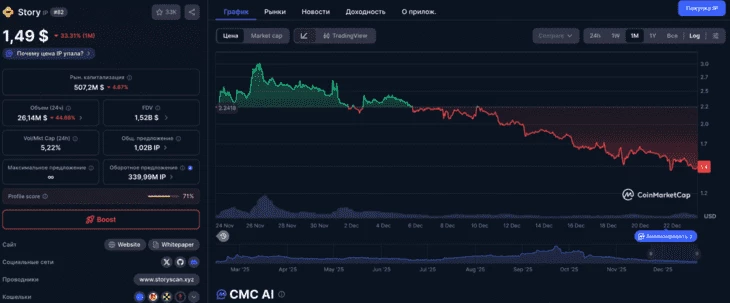 Их стоимость, на момент, когда $IP достиг нового исторического максимума в $14,78, превышала $1,4 млрд. Однако с тех пор токен упал на 90%, и на момент написания статьи его цена равна $1,49. Стоит отметить, что те счастливчики, кто успел вытащить свои подаренные токены на пике роста, хорошо заработали.