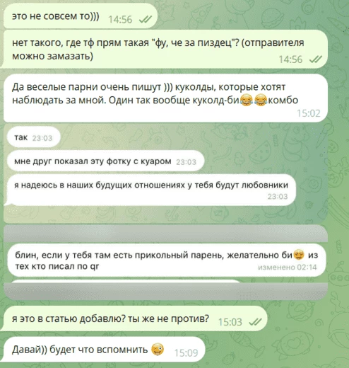 Посему, гайз, если в сфере какая-то девчонка с вами приветливо общается и не кидает вас в ЧС сразу же после того, как вы напишете ей свои кинки — это не потому, что ей хочется обсуждать с вами подобное, а потому, что тупо это ее работа. Ваш КЭП. К слову, девушек это тоже касается: не нужно думать, что здесь такие же парни, как вне сферы, и думать, что у вас все по плану. Иначе можно потом рассказывать на подкастах, как вам ставят палки в колеса. И хорошо, если вас на подкаст позовут.