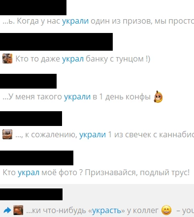 А вот о том, что, судя по всему, кому-то в сфере неочевидно — зашкварно мерч воровать. Причем речь идет даже не о мерче со стенда — со стендов воровать тоже зашквар, но там все же подразумевается попадание мерча в чужие руки. Однако существуют сверхразумы, которые, вместо того чтоб получить мерч на стенде, воруют его у других гостей конфы.