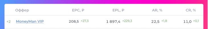 Динамика роста (+27% по EPC, +1,8% по AR) говорит о том, что оффер набирает обороты. Сейчас самое время в него заходить.