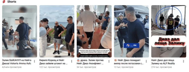 На каждом шоу происходят скандалы и разборки, удары исподтишка и бесконечные конфликты. Например, в качестве наставника на шоу прилетел Нейт Диаз, один из братьев Диаз, известный UFC-боец, которому удалось одолеть Конора Макгрегора. На него буквально напал фрик с прозвищем Залик, после чего Нейт покинул проект. Конфликт породил буквально тысячи рилзов и шортсов, которые набирают миллионы просмотров. На одном шортсе почти 5 000 000 просмотров, это больше, чем на оригинальном видео: у полного ролика 2 500 000 просмотров.