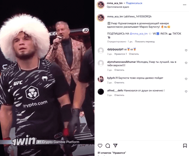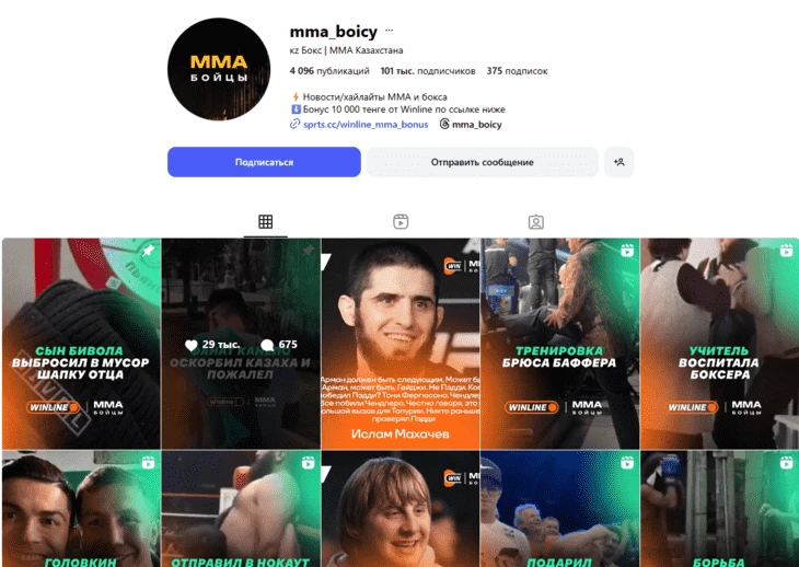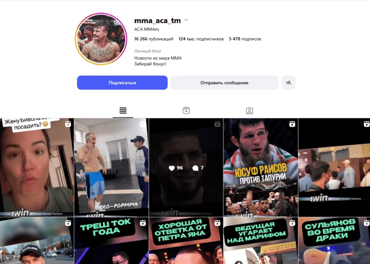 Возьмем пример из Инстаграма, канал про ММА и новости, связанные с ним.