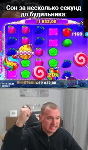 Вверху экрана автор вставляет нереальные заносы на сотни миллионов рублей и внизу свою «честную» реакцию, а после — звук будильника, будто ему это приснилось.