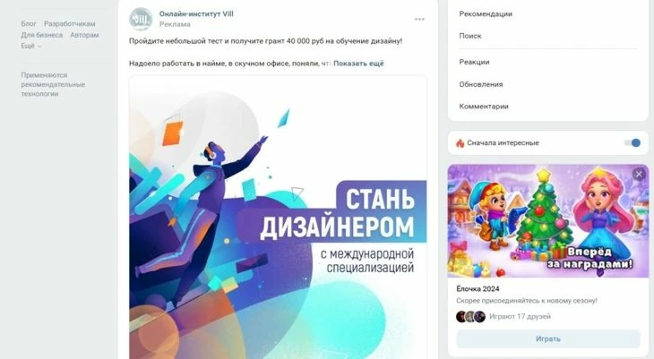 Внутри платформы ВКонтакте не получится размещать креативы в группах или сообществах. Однако, можно нацеливать показ креативов на пользователей, состоящих в группах. Можно договариваться с владельцами групп и блогерами, чтобы они разместили пост в своем сообществе. Подробнее о рекламе в группах можно узнать из этого обзора.