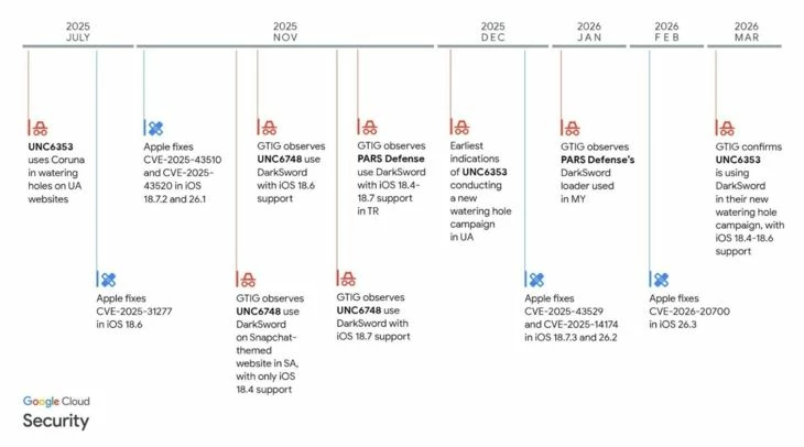 Хронология наблюдений DarkSword и исправлений уязвимостей. Источник: Google