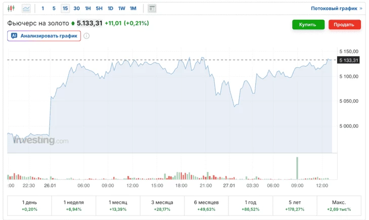 Важно помнить, что рост цен уже произошел, а именно золото превысило $5000, поэтому входить в позицию на пике без стратегии не лучшая идея.